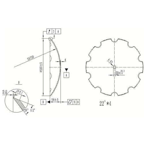 R Disco de rastra dentada 22 pulgadas x 4mm eje cuadrado 33.5m r26